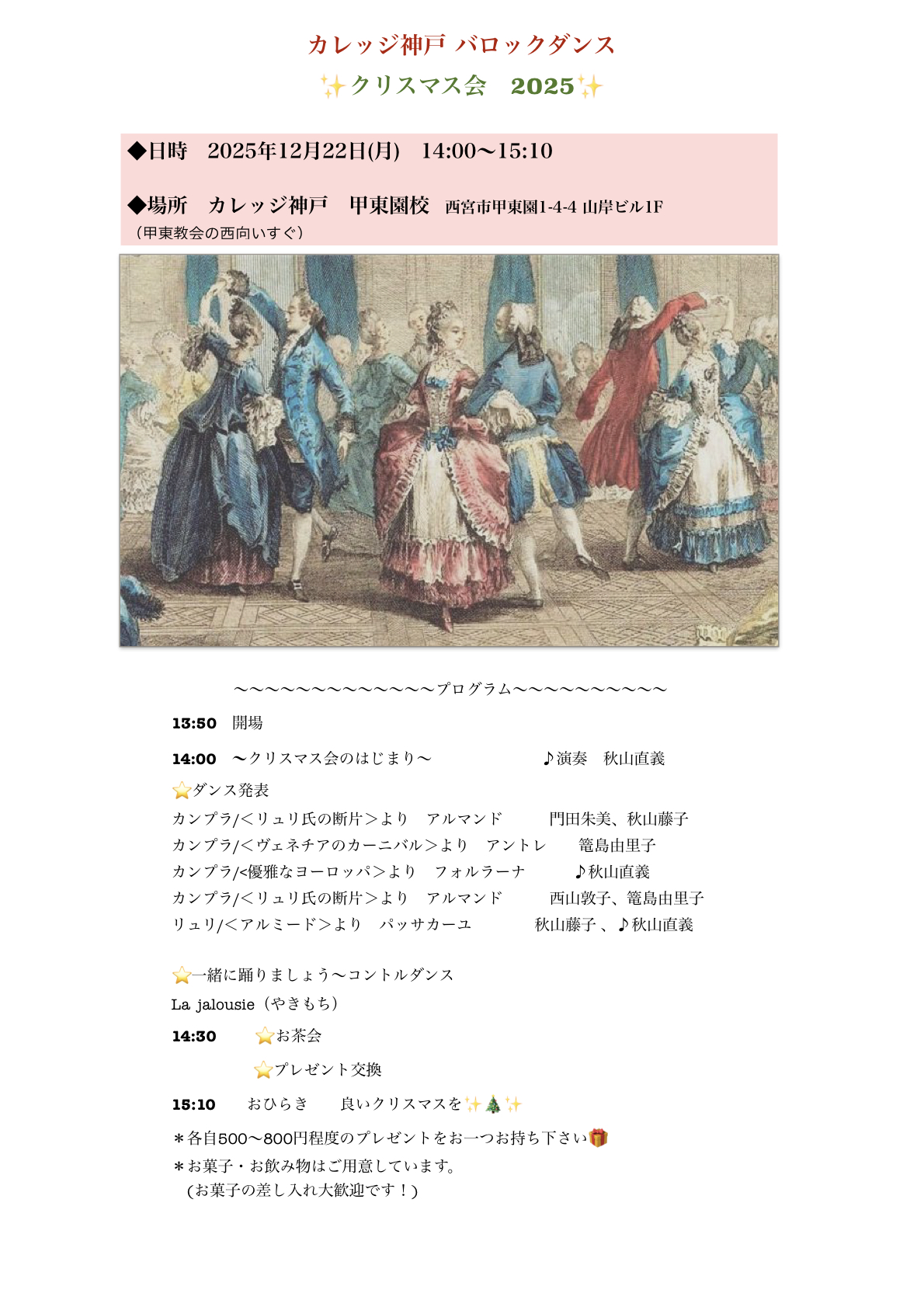 カレッジ神戸甲東園教室で、12/22にクリスマス会をします🎄